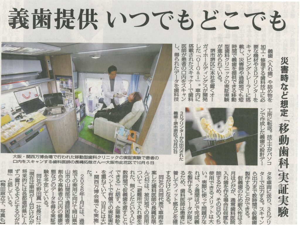 毎日新聞に歯科医療MaaS車両「O-Gai」の実証実験に関する記事が掲載されました