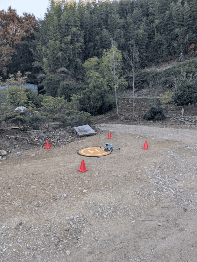 義歯のある地点までドローンを着陸させ、現地で義歯を取り付けて出発点へ戻す実験を2回実施。