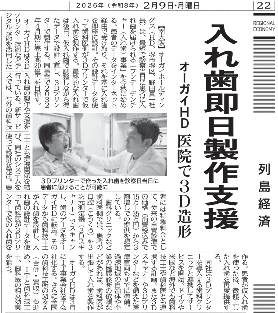 当社が今秋より開始予定の「ワンデーデンチャー(入れ歯)事業」に関する記事が掲載されました。